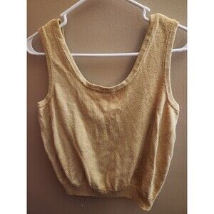 St. John Basics Top Scoop Neck Metallic Knit Tank Santana Women's Size L Gold