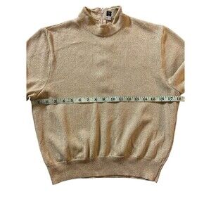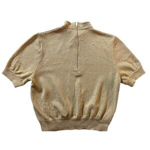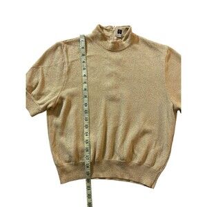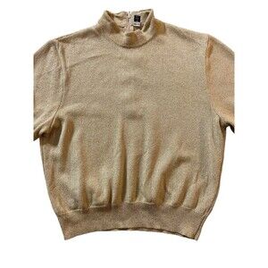 St John Basics by Marie Gray Gold Metallic Knit Top Mock Neck Short Sleeve M USA