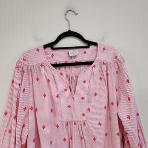 St. John Bay Stripes Embroidered Floral 3/4 Sleeve Blouse Red Pink Size 2X