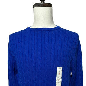 St. John Bay Sweater Mens Small Blue Cable Knit Classic Pullover Super Soft NWT