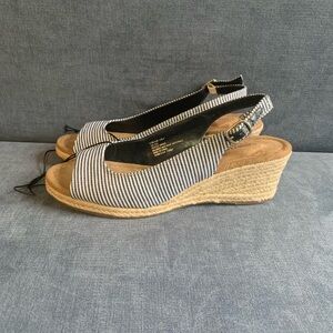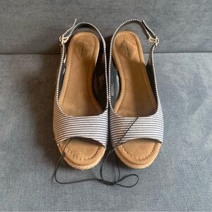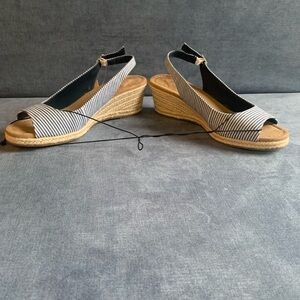 St. John Bay Womens Sandals 9.5 M Ankle Strap Wedge Espadrille Stripe Summer New