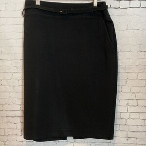 ST JOHN office, professional minimalist belted skirt with kick slit in back. Gorgeous, classic basic capsule piece that will last a lifetime.