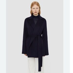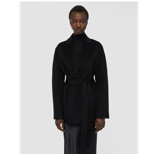 St John Belted Double Face Wool & Cashmere Wrap Coat Black