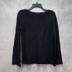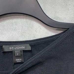 St. John Black Caviar Luxe Links Texture Bateau Neck Long Sleeve Top SZ P