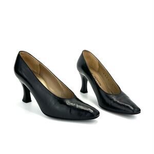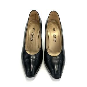 St. John Black Classic Pumps Size 8 Leather Comfort Heel Almond Closed-Toe