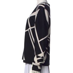 St John Black Cream Geometric Button Up Cardigan Jacket Blazer Size 14 EUC