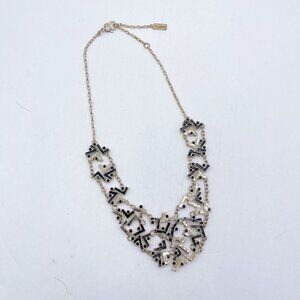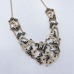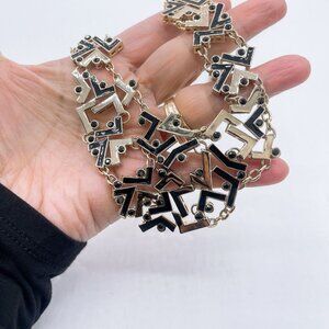 St John Black Gold Multi Link Geometric Pattern Necklace Medium