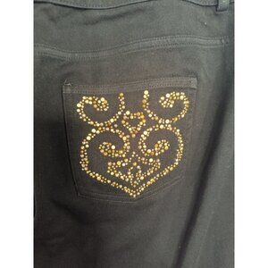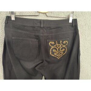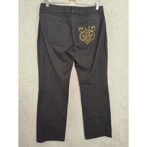 St. John Black Gold Studded Heart Pocket Mid Rise Straight Leg Jeans Womens 10