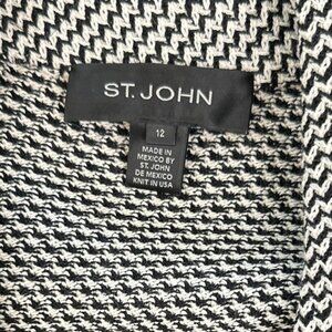 St. John Black Ivory White Chevron Zig Zag Pattern Stretch Knit Blazer Jacket 12
