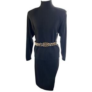 St. John Black Knit 2-Piece Set Sweater + Skirt Women’s 8 Classic