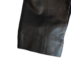 St. John Black Soft 100% Leather Front Panel Stretch Moto Luxury Leggings Sz. S