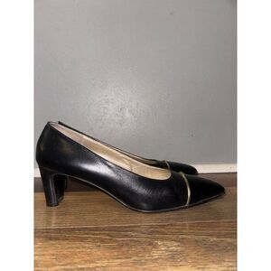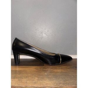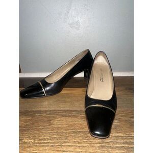 St. John Black Patent Leather Pumps Heels With Gold Detail Size 10 AA