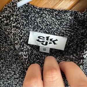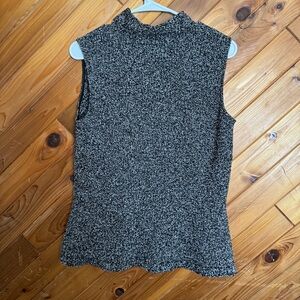 Discover the elegance of the St. John Black Ribbed Sleeveless Tank Top, featuring a sophisticated mandarin collar and a fitted silhouette. Crafted from a textured knit, this top offers a chic and versatile addition to your wardrobe. The classic black and white color scheme ensures timeless style, perfect for any occasion.
