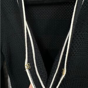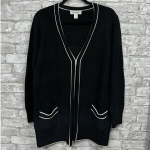 St. John Black & White Stripe Open Cashmere Wool Blend Cardigan Medium