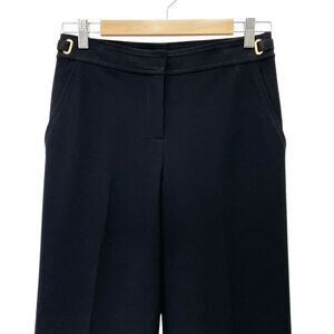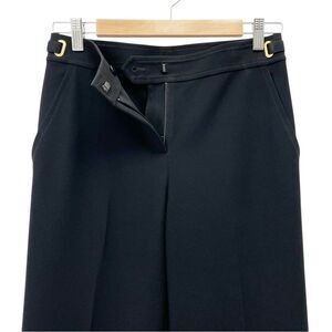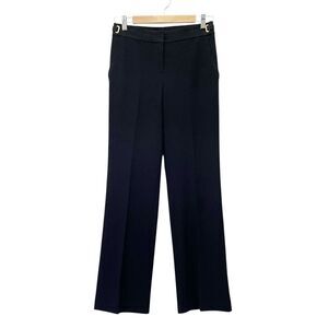 St. John Black Wide Leg Dress Pants Size 2 Nordstrom Gold Buckle Trim USA Made