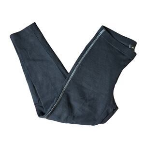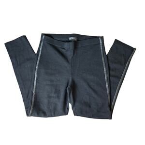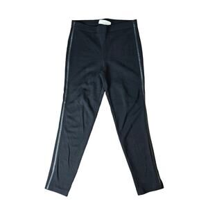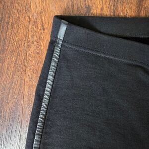 St. John Black Wool Blend Dress Pants with 100% Leather Strip Down Side, Size 8