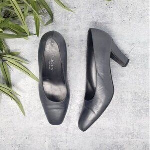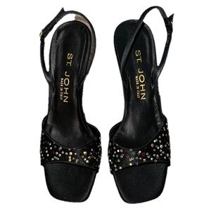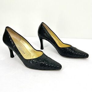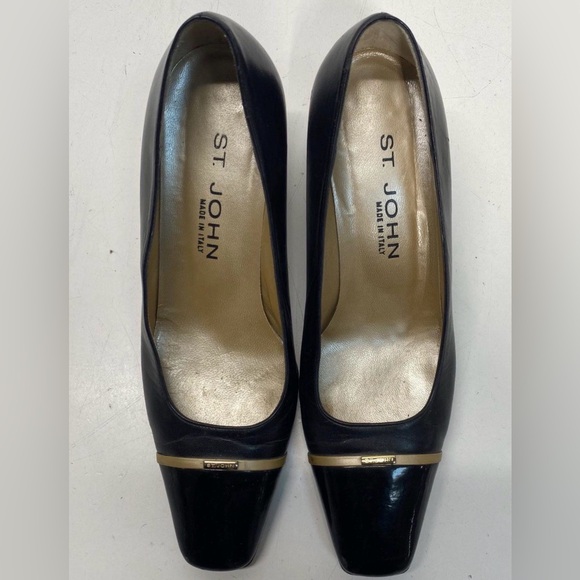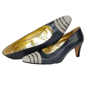 St John Women Pump 445 Black Leather Slip-On Size 7 B.