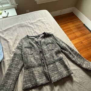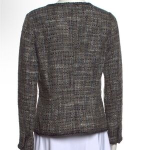 St. John Black and Gray wool striped sweater Tweed Blazer