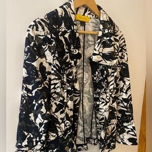 St John Black and White Floral Leaf Print Lightweight Cotton Jacket
