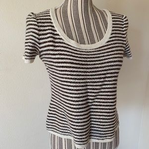 St. John Black and White Striped Short Sleeve Tee