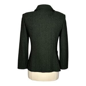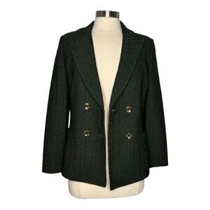 St John Blazer Green Black Jacket Textured Double Breasted Tweed Size 6
