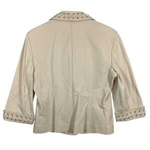 St John Blazer Laced Eyelet Cotton Stretch Tan Beige Blaze Women's Size Medium