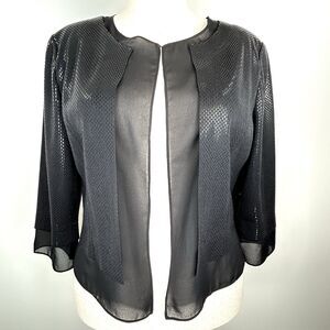 St. John Blazer Women's 16 Black Couture Shimmer Open Embellished Evening Jacket