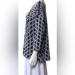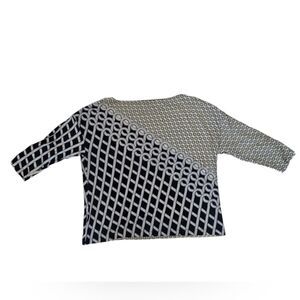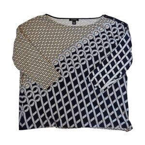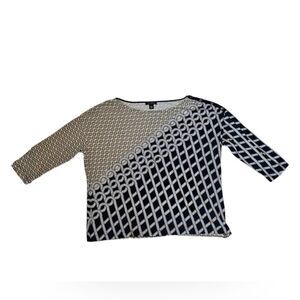 St. John Blouse Chain Swirl 3/4-Sleeve Shirt Top Black and Beige Women’s Size XL