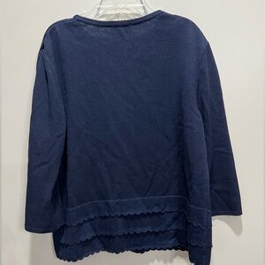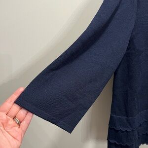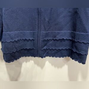 St. John Blue Santana Knit Zippered Jacket Scalloped Size Medium Classic Resort