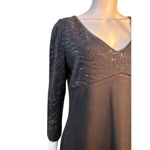 St. John Bodycon V-Neck Dress With Rhinestone Embellished Top Black Size 12 EUC