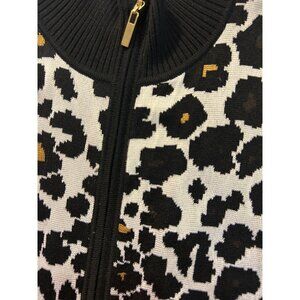 St. John Boutique Animal Print Black & Cream Full-Zip Knit Cardigan Sweater Smal