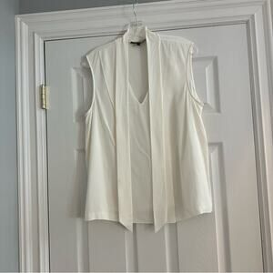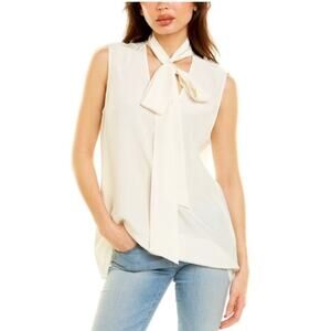 St. John Bow-tie Silk Sleeveless Blouse Shirt Top Quiet Luxury Designer LARGE