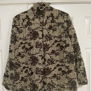 Keywords: St. John jacket, knit jacket, brown jacket, beige jacket, button front jacket, career jacket, designer jacket, women's jacket, size M, classic jacket, elegant jacket, formal jacket, business jacket, textured jacket