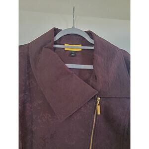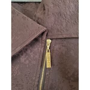 St. John Brown Gold Textured Full Zip Classy Cotton Blend Moto Jacket. Size 16