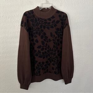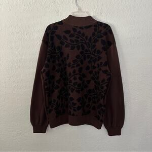 St John Brown Leaf Floral Turtleneck Sweater Large