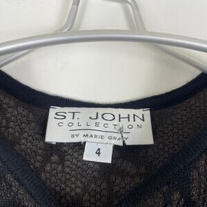 St. John Brown and Black Short Sleeve Blouse See Through Wool Viscose Size 4
