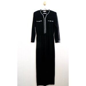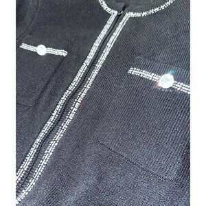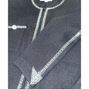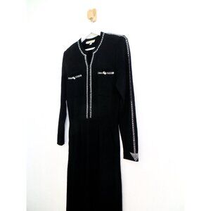St. John By Marie Gray Knit Jumpsuit with Crystal Embellished Detail Black SZ 8