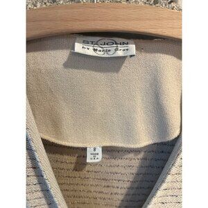 St. John By Marie Gray Striped Knit Beige Cardigan Blazer Womens Size 8