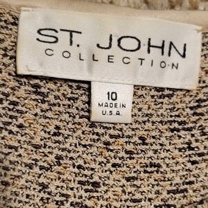 St. John COLLECTION Tweed Dress Sleeveless Side Zipper Beige Women's 10 Sheath