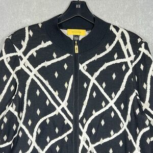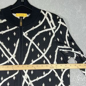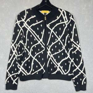 Up for sale: St John Printed Pattern Knit Padded Zipper Cardigan Jacket Black Womens Large