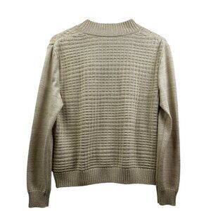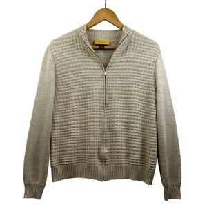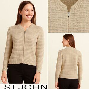 St. John Cardigan Sweater Womens M Metallic Full-Zip Beige Gold Knit Made in USA