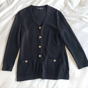 St. John Cardigan Sweater Womens 4 Black Knit Button Front Long Sleeve Pockets.