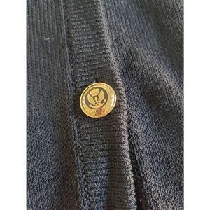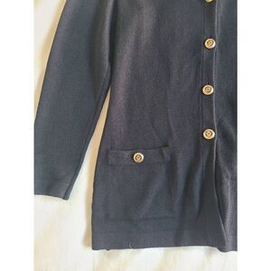 Designer, Dog Shows, preppy, Knit, Button Closure, Long Sleeve, Button Front, Thermal, Fall, Winter, Spring, St. John Cardigan Sweater Womens 4 Black Knit Button Front Long Sleeve Pockets.