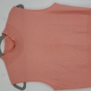 St John Cashmere Mock Neck Sweater Tank Top Sleeveless Cross Grid Pink Womens L