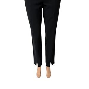 St. John Caviar Black Crepe Marocain Front Slit Ankle Pants