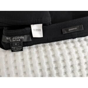 St. John Caviar Black Crepe Marocain Front Slit Ankle Pants in Jennifer Fit