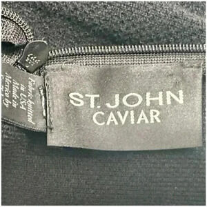 St. John Caviar Dress Midi Black Women's XS Short Sleeve V-Neck Woo