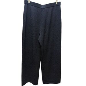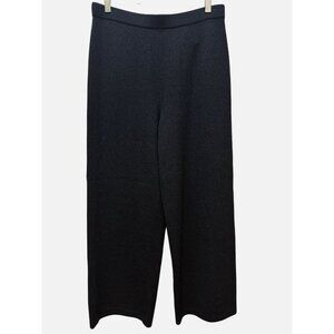 These St. John Caviar pants offer a sophisticated look with their sleek black knit fabric. The wide-leg design provides both comfort and style, making them suitable for a professional setting.