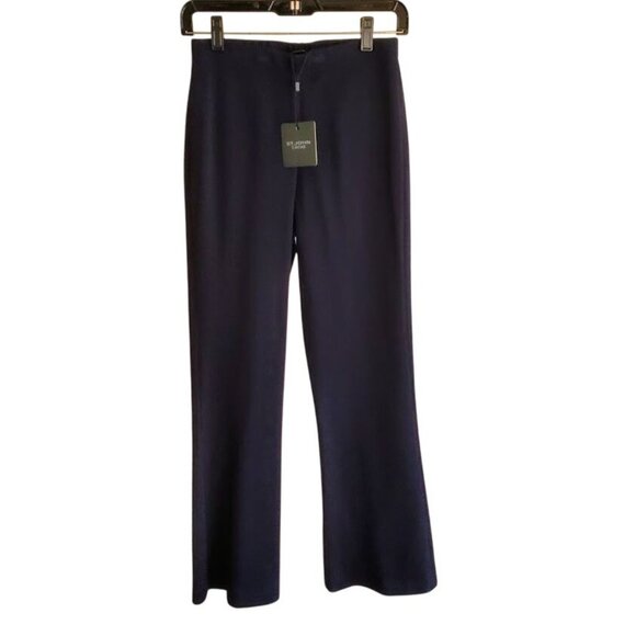 St. John Caviar Navy Knit Pants Kasia Sz 2 Wool Blend Pull-On Luxe Trousers NWT