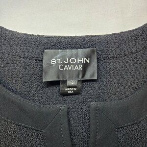 St. John Caviar SZ 12 Black Wool Blend Textured Long Sleeve Zip Front Jacket